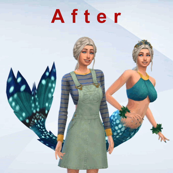 When I was working on the second household thumbnails of my Gallery Poses Addon, I wondered what I did to this pose to make it look so aweful, just to realize that I never touched it in the first place. EA made this mermaid pose with way to many keyframes. The game chooses the ones at second 2 (of its animation) which leads to a distorting left hand and a clipping tail.